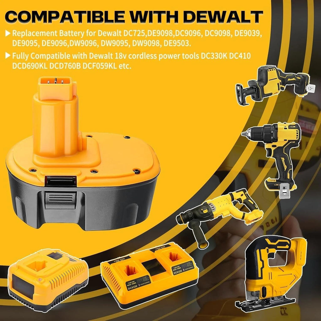 - Wide Compatibility – Works with Dewalt DC9096, DC9098, DC9099, DW9095, DW9096, DW9098, and other 18V XRP Ni-MH battery models.
