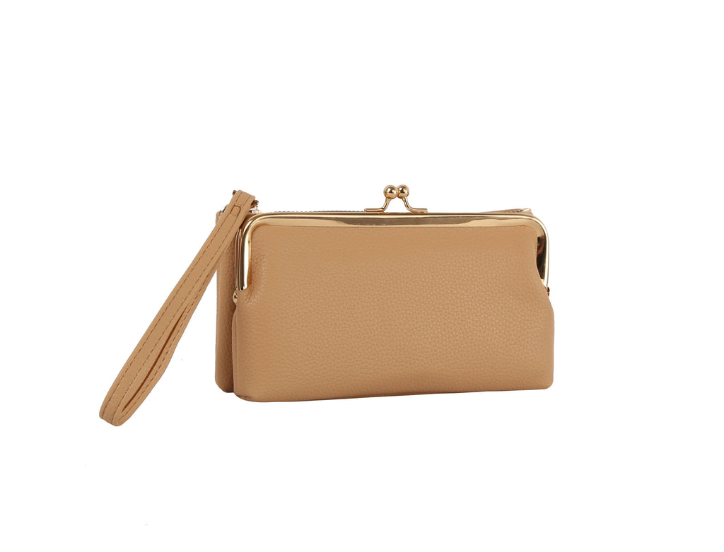 Experience ultimate versatility! This innovative wristlet can be used as one spacious clutch, or easily separated into a sleek wristlet and a charming, secure kiss-lock coin purse—giving you two stylish options for any occasion.