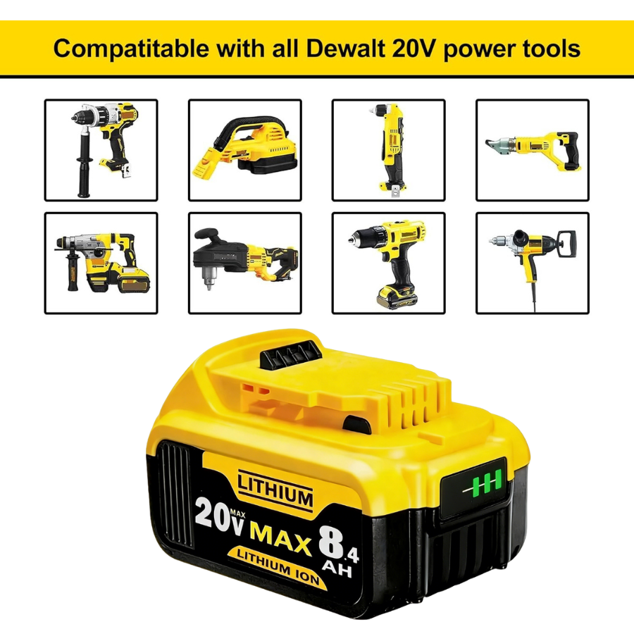 - True High Capacity – 8.4Ah lithium-ion battery delivers extended runtime for Dewalt 20V cordless tools, ensuring uninterrupted power for heavy-duty tasks.