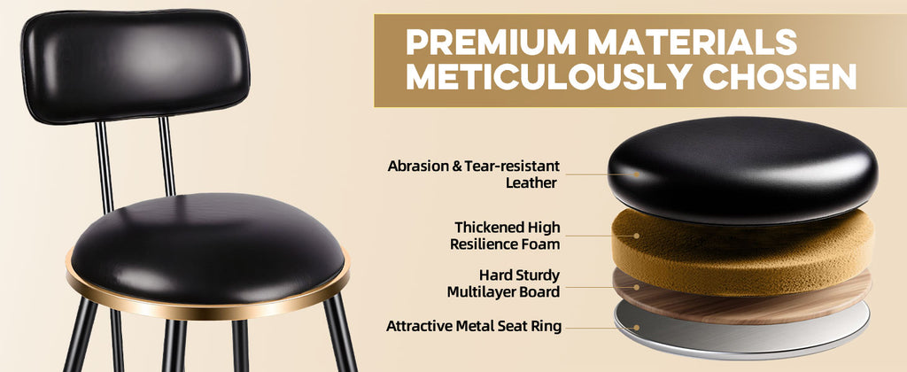 - 【Create Your Comfort Zone】Settle into ergonomic comfort with our thoughtfully designed bar stools. The seat with back and resilient foam offer ideal support for long periods of sitting, while maintaining their form through years of regular use